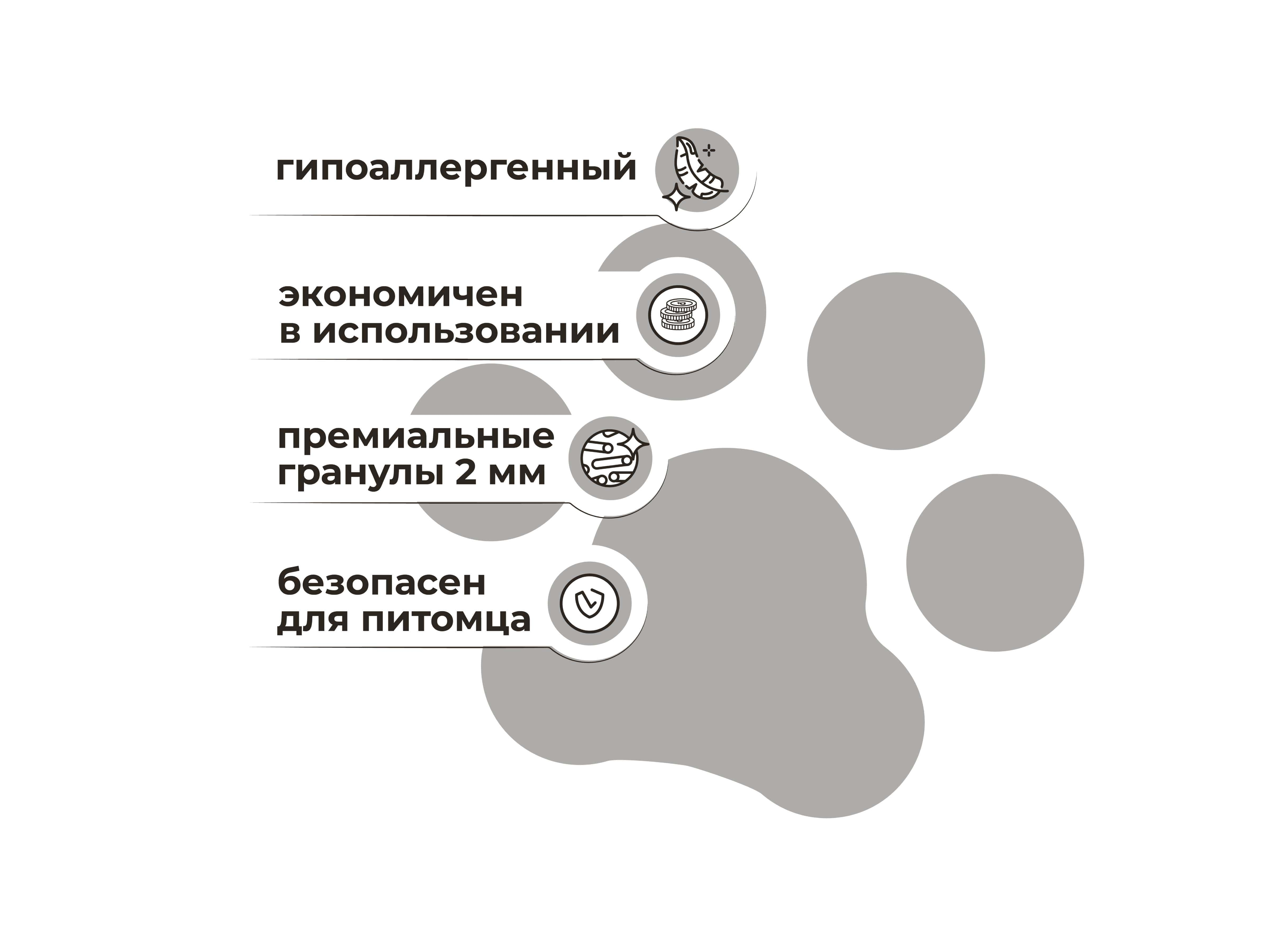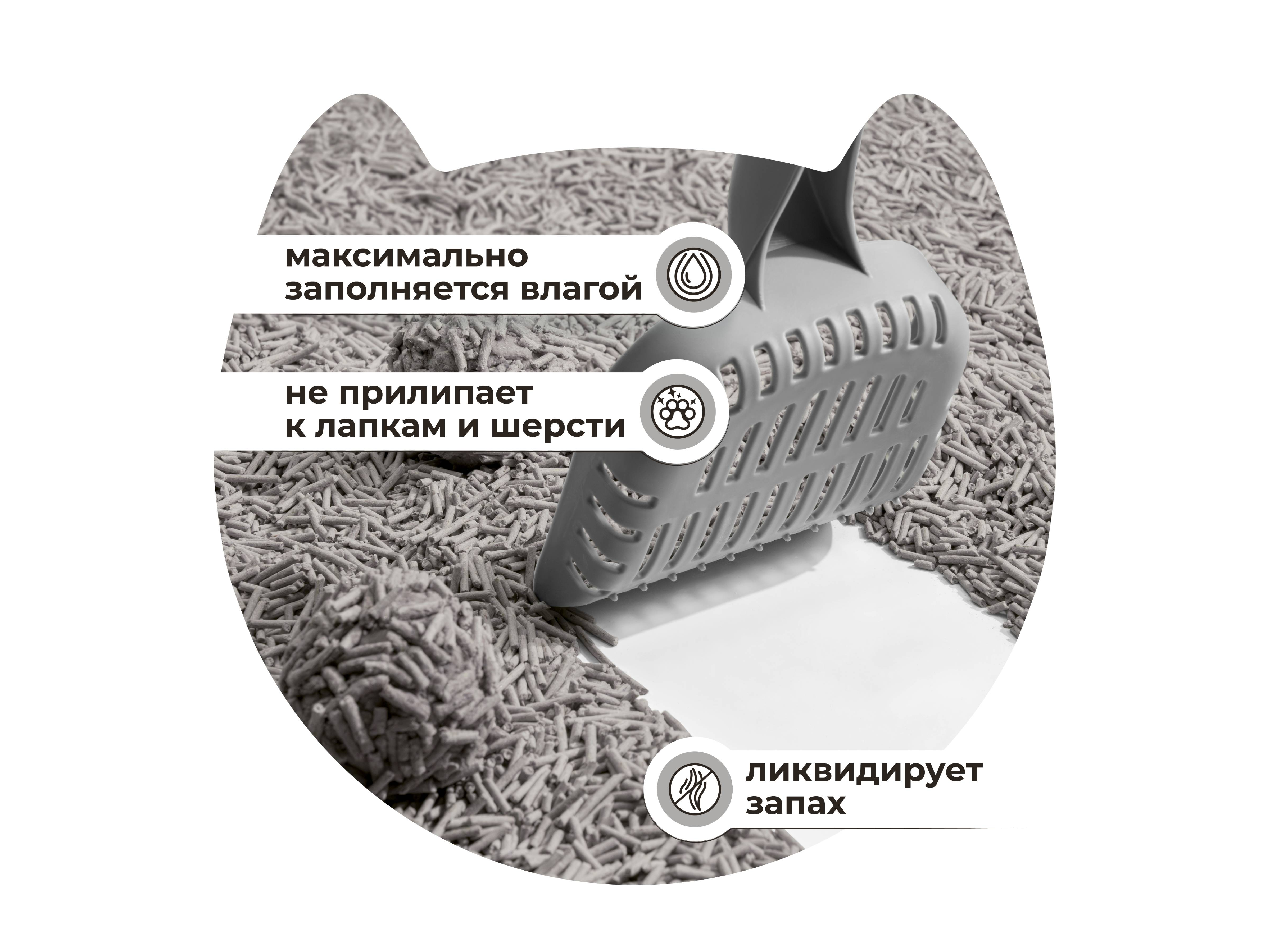 Высокая абсорбирующая способность гранул позволяет надежно блокировать неприятные запахи и сохранять лоток чистым, а компоненты натурального происхождения делают его безопасным для кошек и людей.