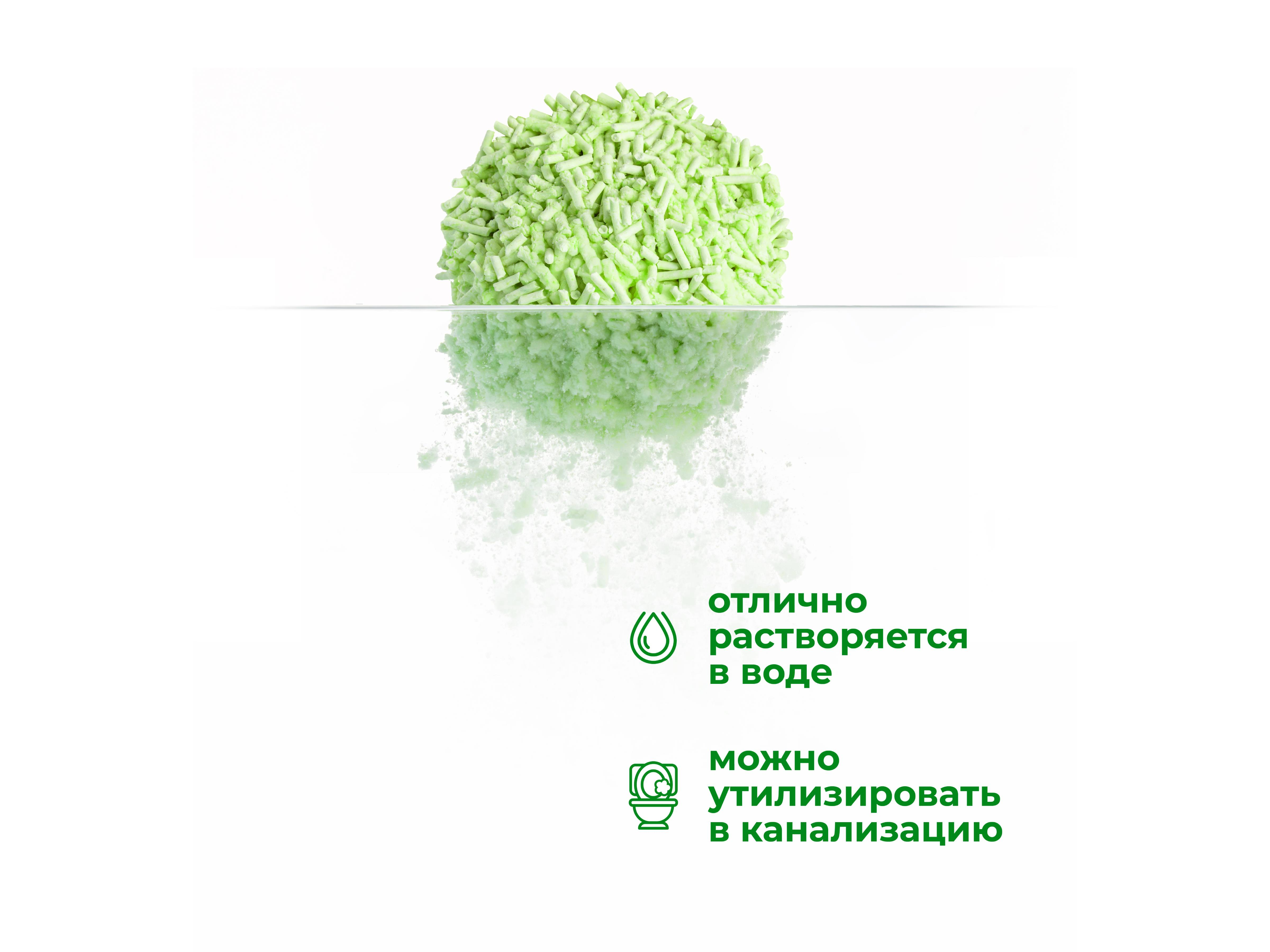 Особенностью наполнителя Miaumi® TOFU Green Tea Scented являются премиальные гранулы диаметром 2 мм, обладающие способностью образовывать сверхпрочные комки при соприкосновении с жидкостью, которые впоследствии легко утилизируются в унитаз.