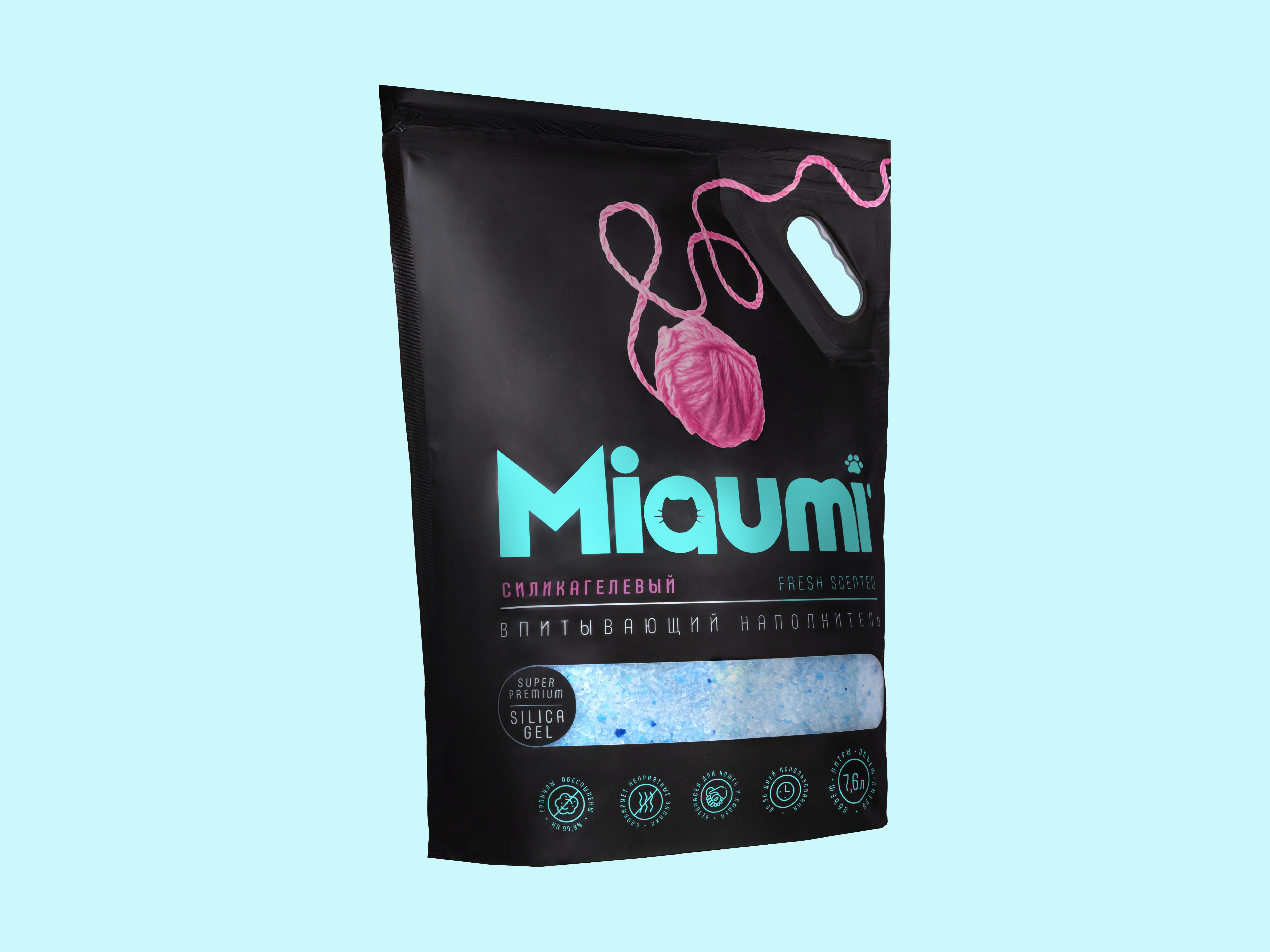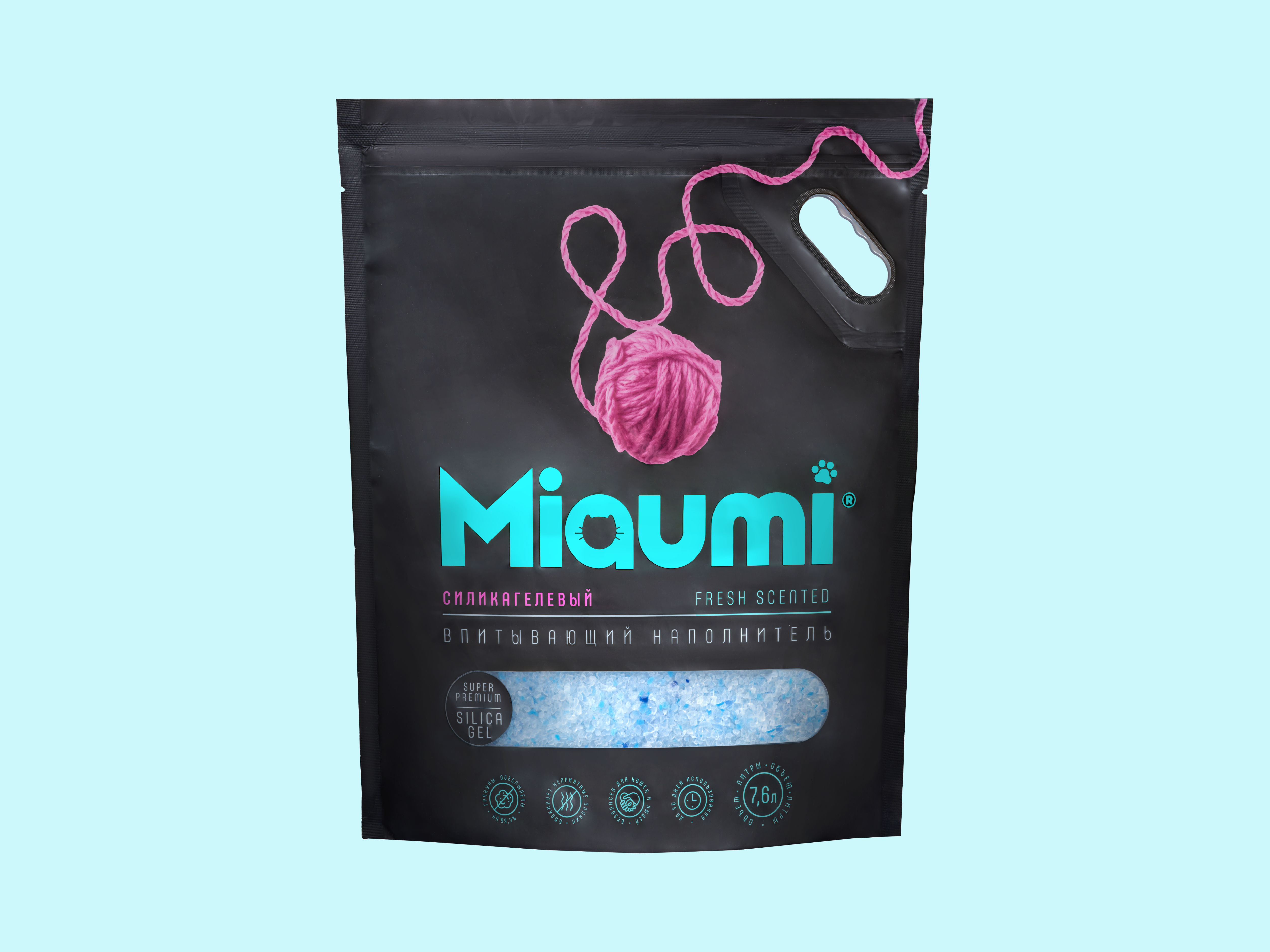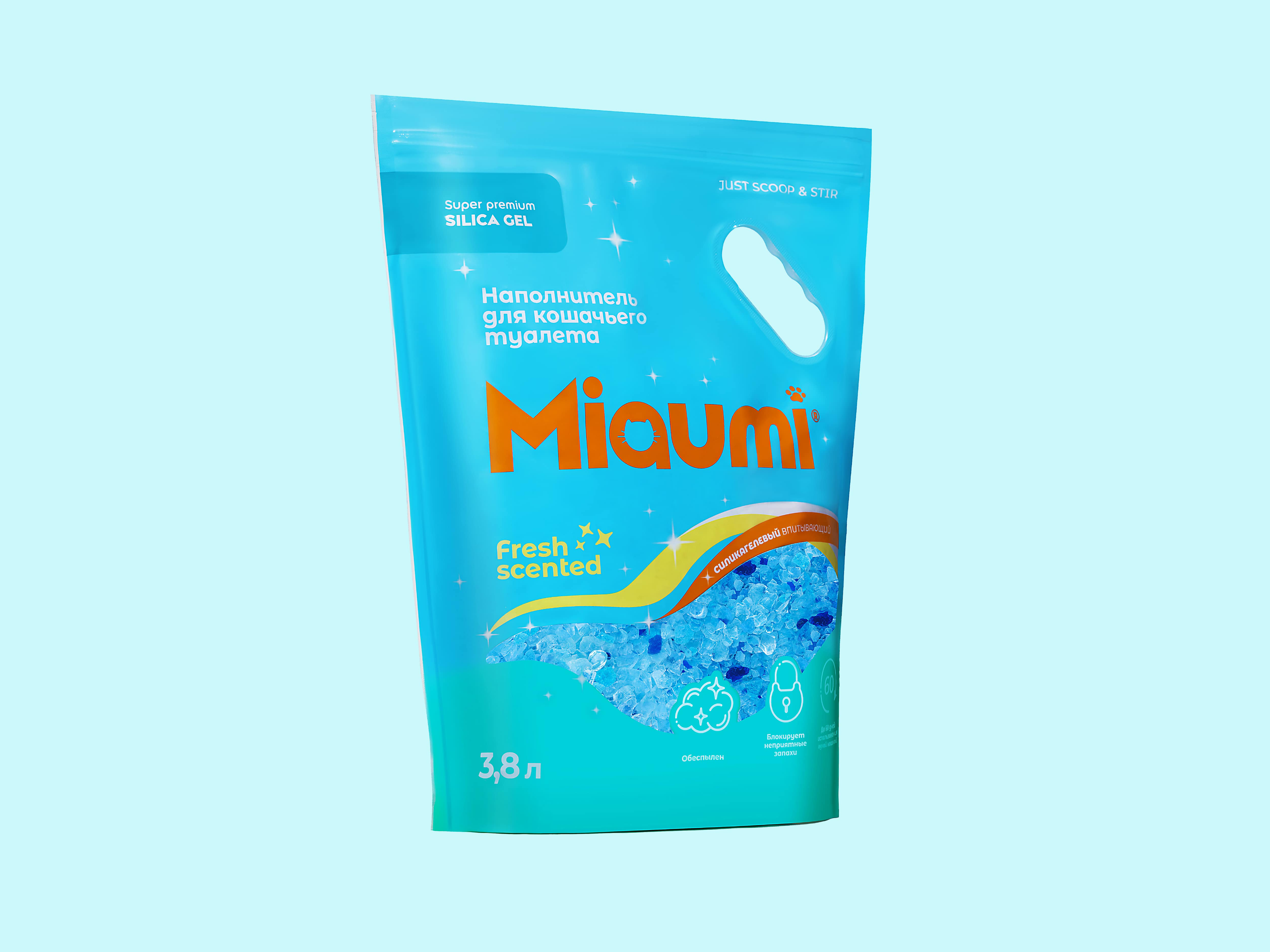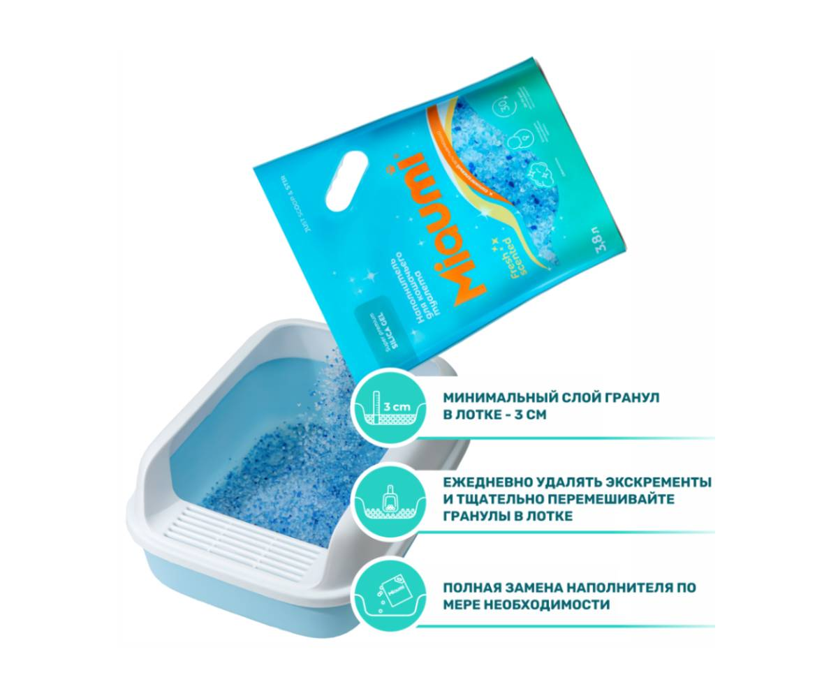 Miaumi® Silica Gel Fresh Scented — суперпремиальный впитывающий силикагелевый наполнитель для кошачьего туалета с тонким ароматом свежести.