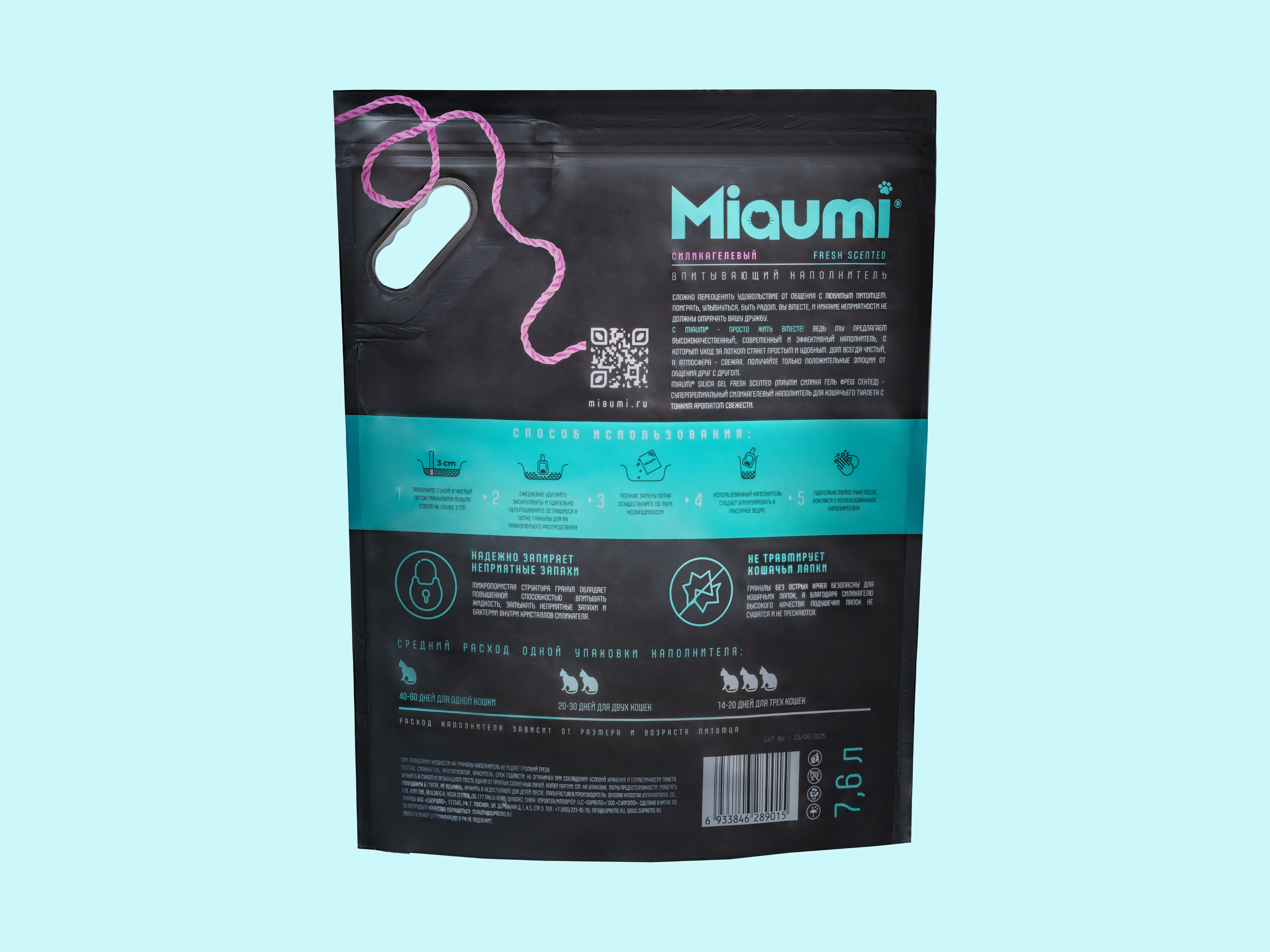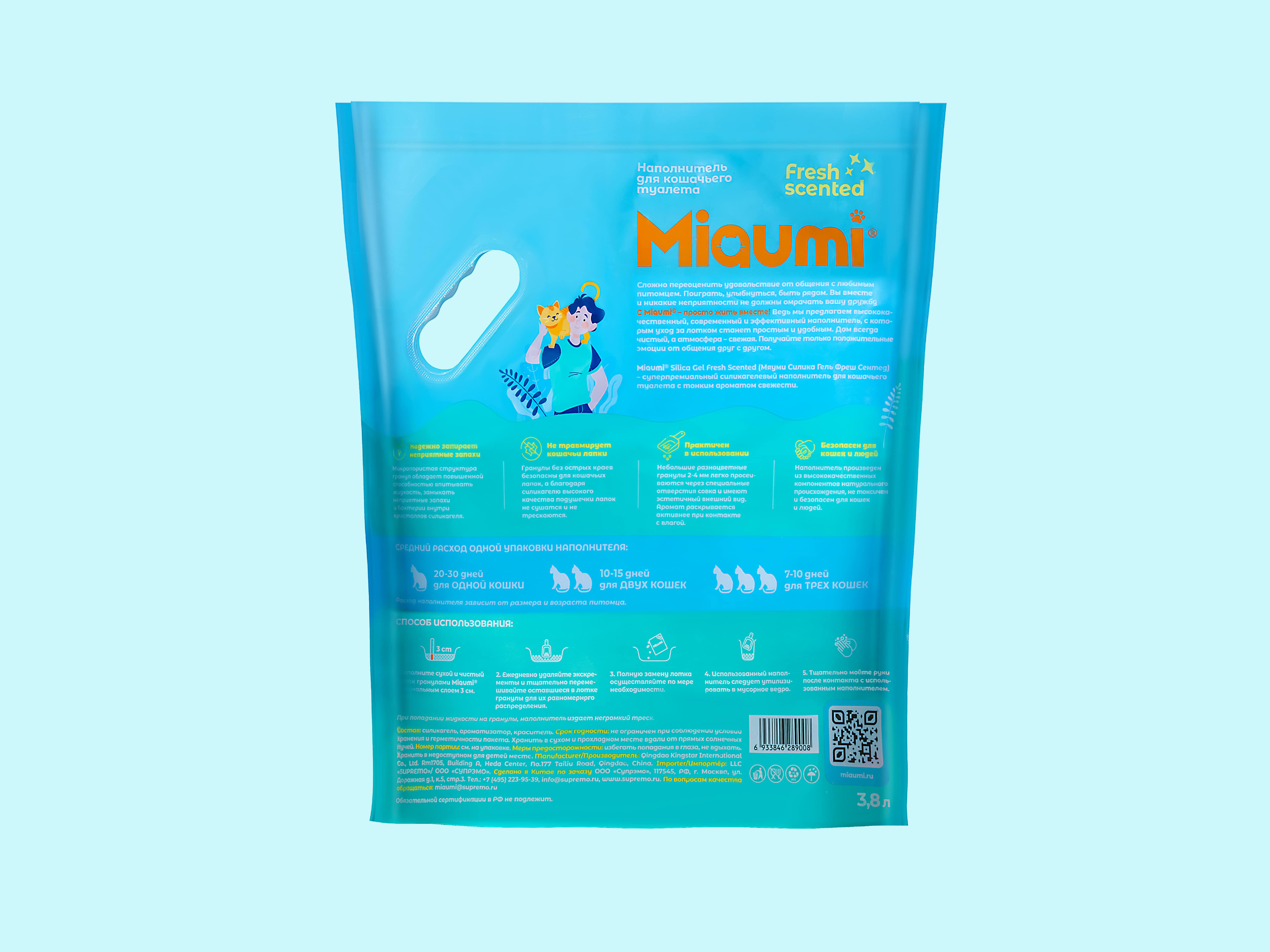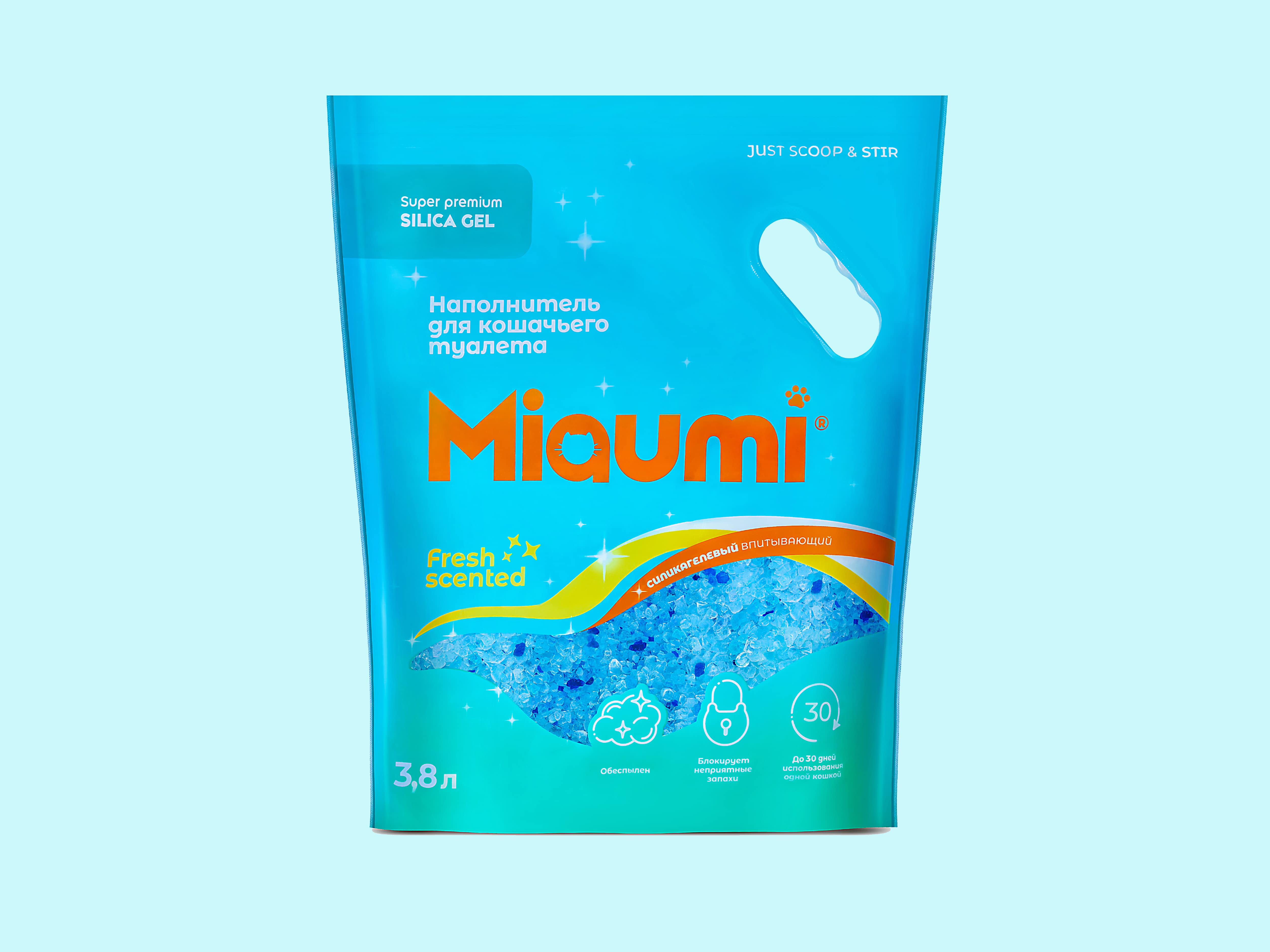 Miaumi® Silica Gel Fresh Scented — суперпремиальный впитывающий силикагелевый наполнитель для кошачьего туалета с тонким ароматом свежести.