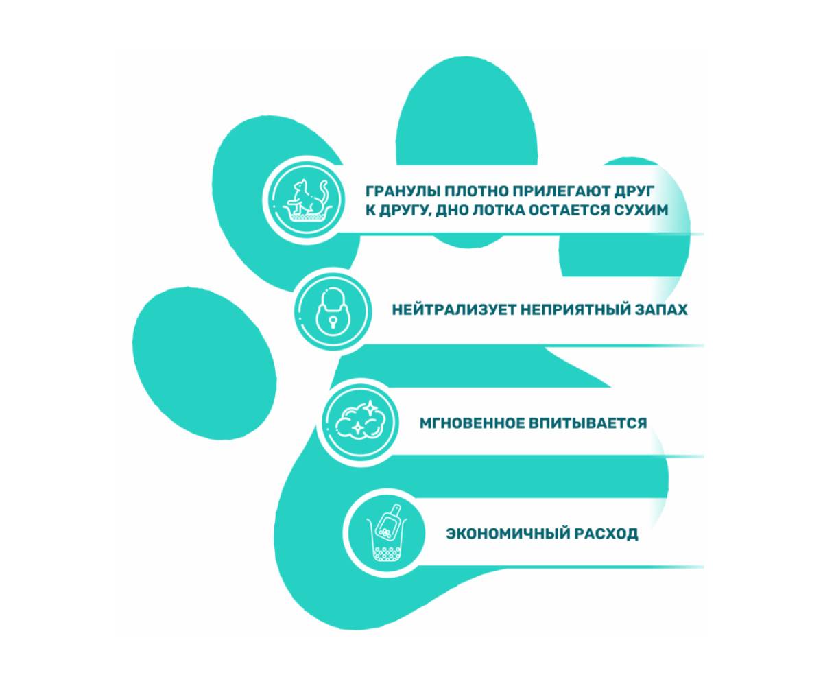 На 99,9% не содержит пыли, что позволяет сохранять лапки питомца и пол в доме чистыми.